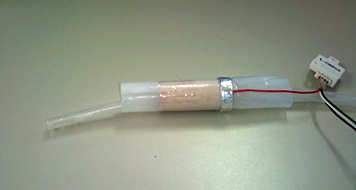 電極部分をアルミで作り、ラップでチューブに巻きつけました。